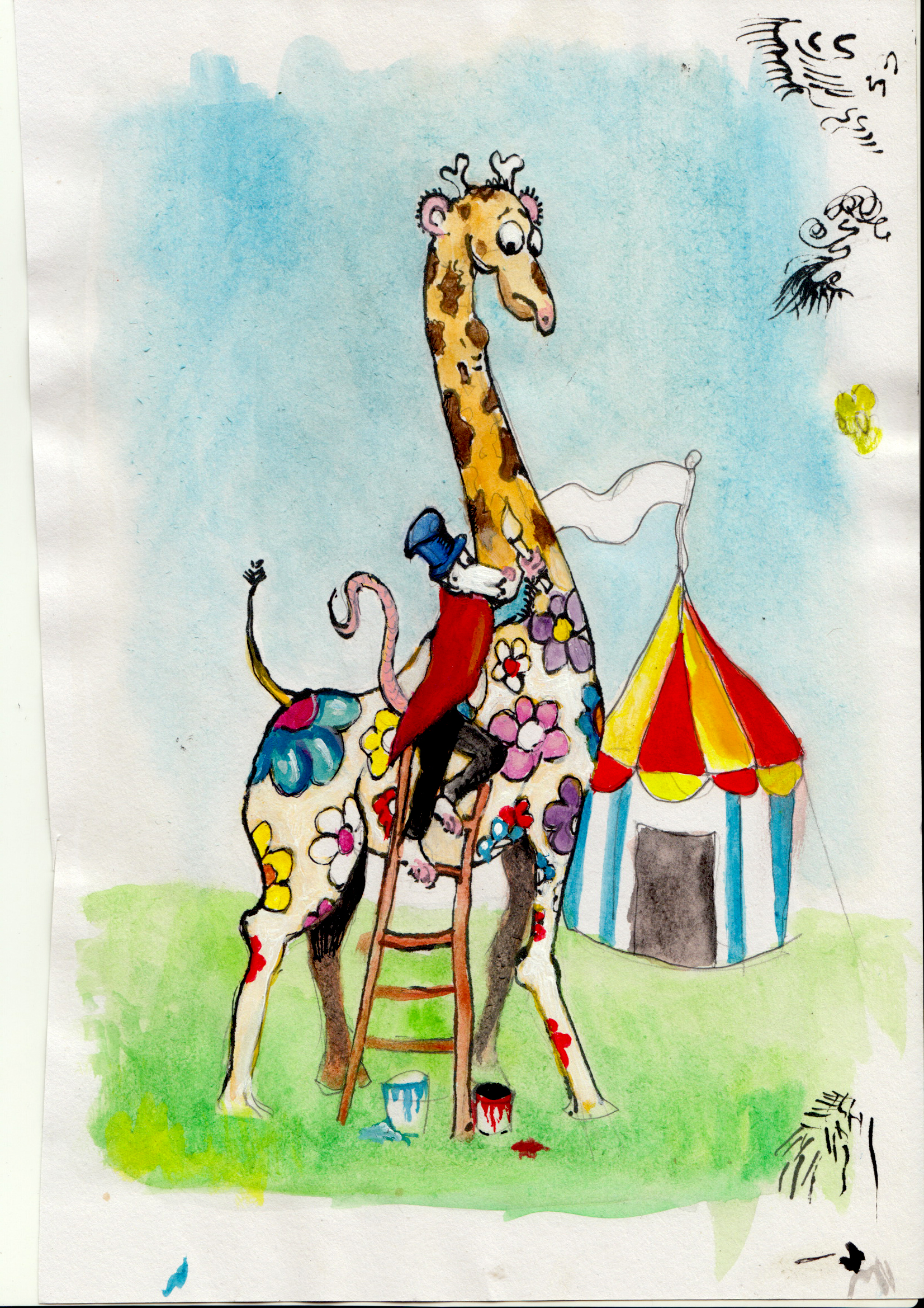 Watercolour, gouache and digital print.